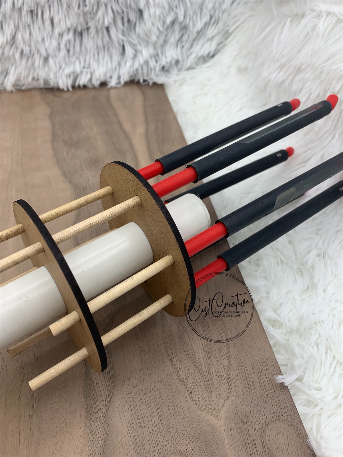 Laser cut holder for 3/16″ dowel rods (6 included) that slides on your turner arm.